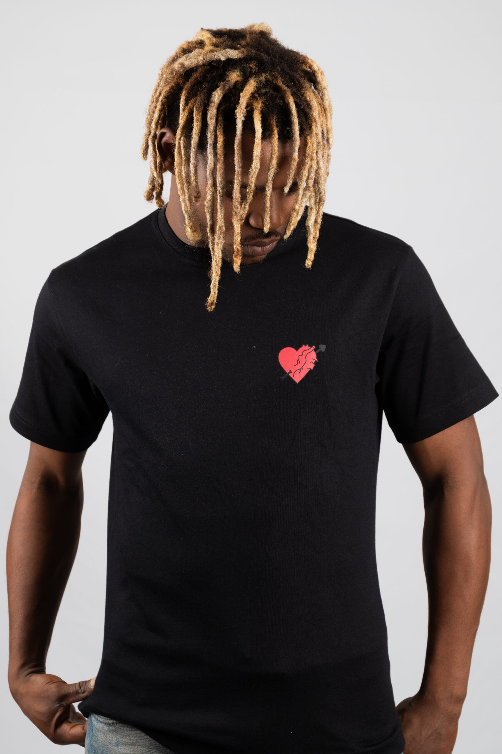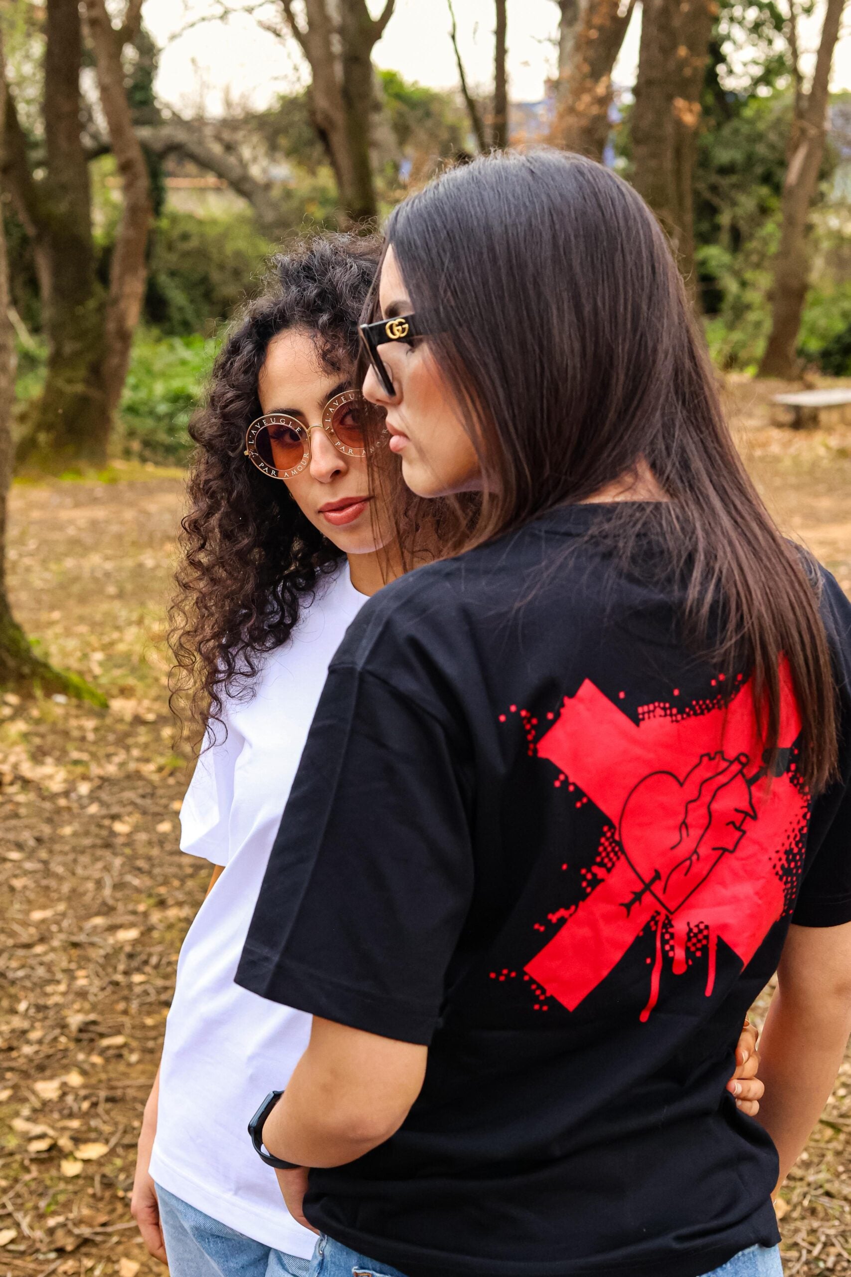 Issues de la collection Homme / Femme été 2025, les pièces de prêt-à-porter du quotidien sont sublimées par des matériaux de qualité supérieure et bénéficient d’un savoir-faire impeccable. Ce t-shirt est confectionné en jersey de coton feutré épais blanc , flocage coeur devant et coeur dans le dos.