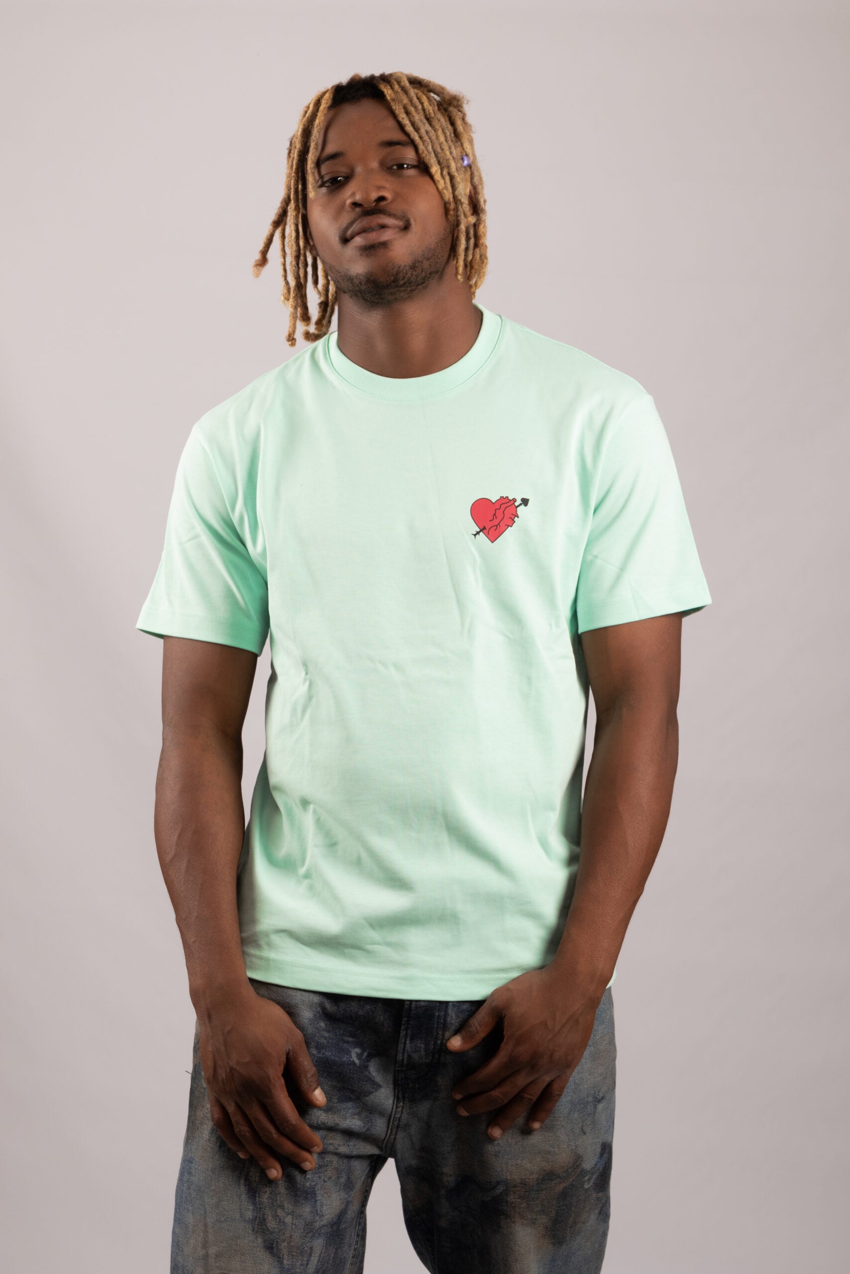 Issues de la collection Homme / Femme été 2025, les pièces de prêt-à-porter du quotidien sont sublimées par des matériaux de qualité supérieure et bénéficient d’un savoir-faire impeccable. Ce t-shirt est confectionné en jersey de coton feutré épais blanc , flocage coeur devant et coeur dans le dos.